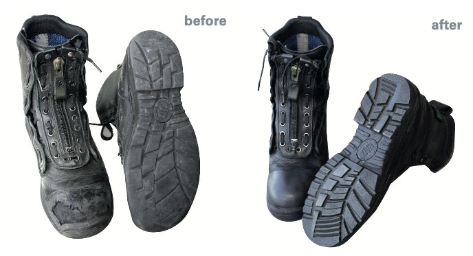 When looking to refurbish your HAIX work boots, there are some items that will not be eligible for repair or retread, and you would need to look at retiring them. When considering a boot retread, bear in mind there is a point of no return for a retread, similar to when you should replace your car’s tires. If the tread gets too low, and definitely if it is to the point of no tread at all, then it will not qualify for a retread, and it is time for that new pair boots. Low tread can lead to slips and falls. In addition, boots that have sole separation, delamination or cracks cannot be repaired or retreaded, and should be retired.